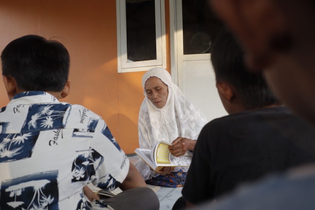 “Bukan saya saja yang merasakan manfaatnya,” tutur Nek Sarjah lembut, “anak-anak di sini juga senang… mereka belajar, mengaji, dan semoga jadi anak-anak yang pintar, sukses dunia dan akhirat.”